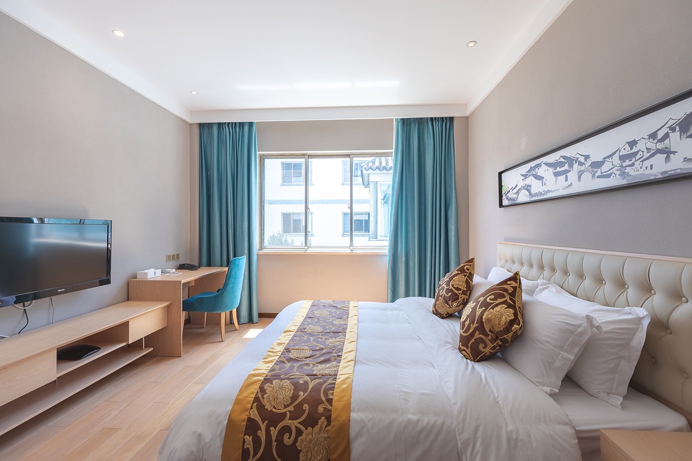 This is a water town style hotel that integrates plain local buildings with comfortable modern living facilities.