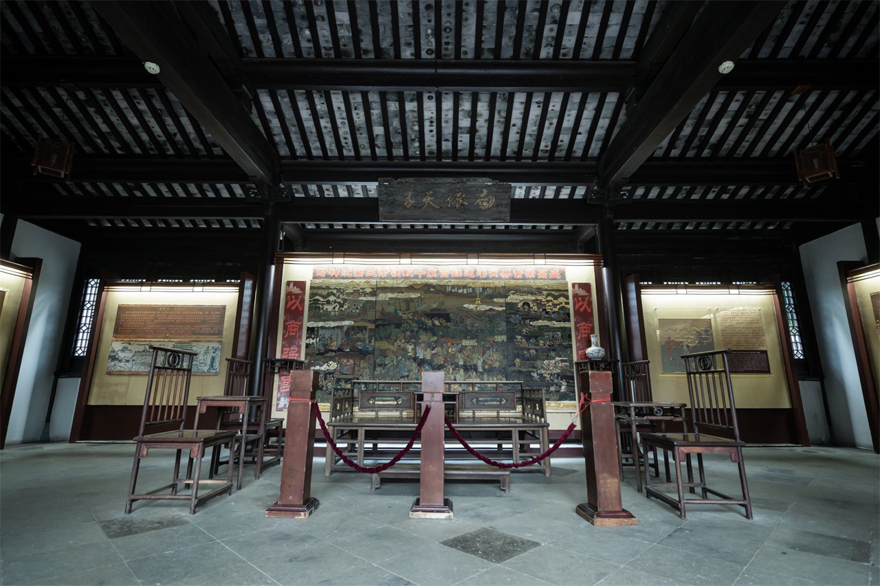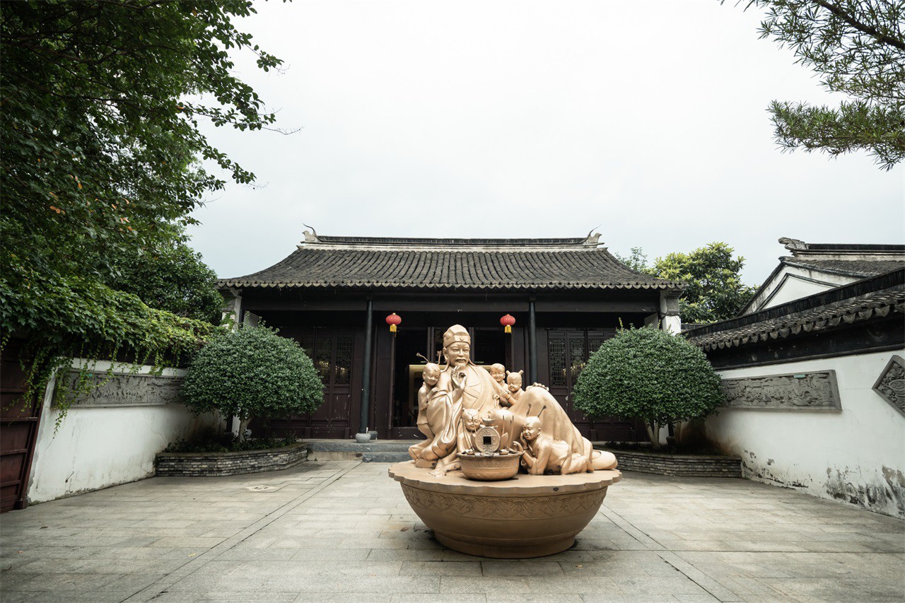 The Residence of the God of Wealth was Shen Wansan’s former residence and is located in the Dongcha Village within Zhouzhuang Ancient Town. Inside this building there are bronze statues, brick carvings, lacquer carvings, real-life models, layouts, scenery boxes, clay sculptures, comic strips and other artistic displays, demonstrating Shen Wansan’s fortune-making stories, the vicissitudes of his business, and legendary life experiences as well as the daily life scenes of the Shen family.