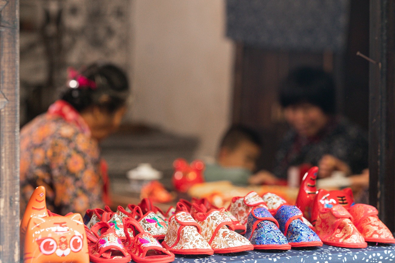 Handmade by local grannies in the water town, each pair of shoes is extremely elegant with lifelike tiger heads and dragon patterns.